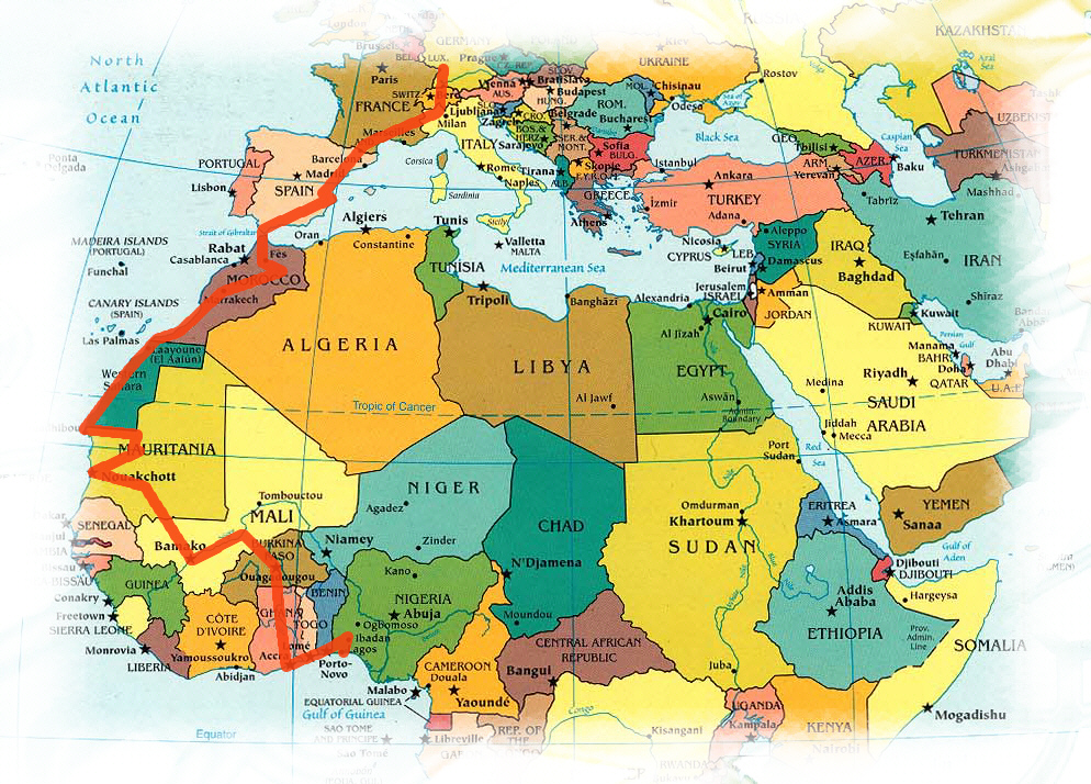SPANIEN - MAROKKO - WESTSAHARA - MAURETANIEN - MALI - BURKINA FASO - TOGO - BENIN - NIGERIA